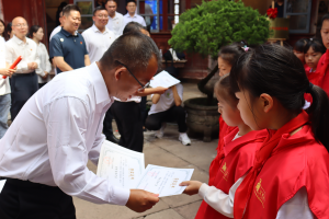 揭牌仪式上,伟德官网bv1946“艾思者”团队与艾思奇红领巾小小宣讲员合唱《歌唱祖国》,并为其颁发证书。